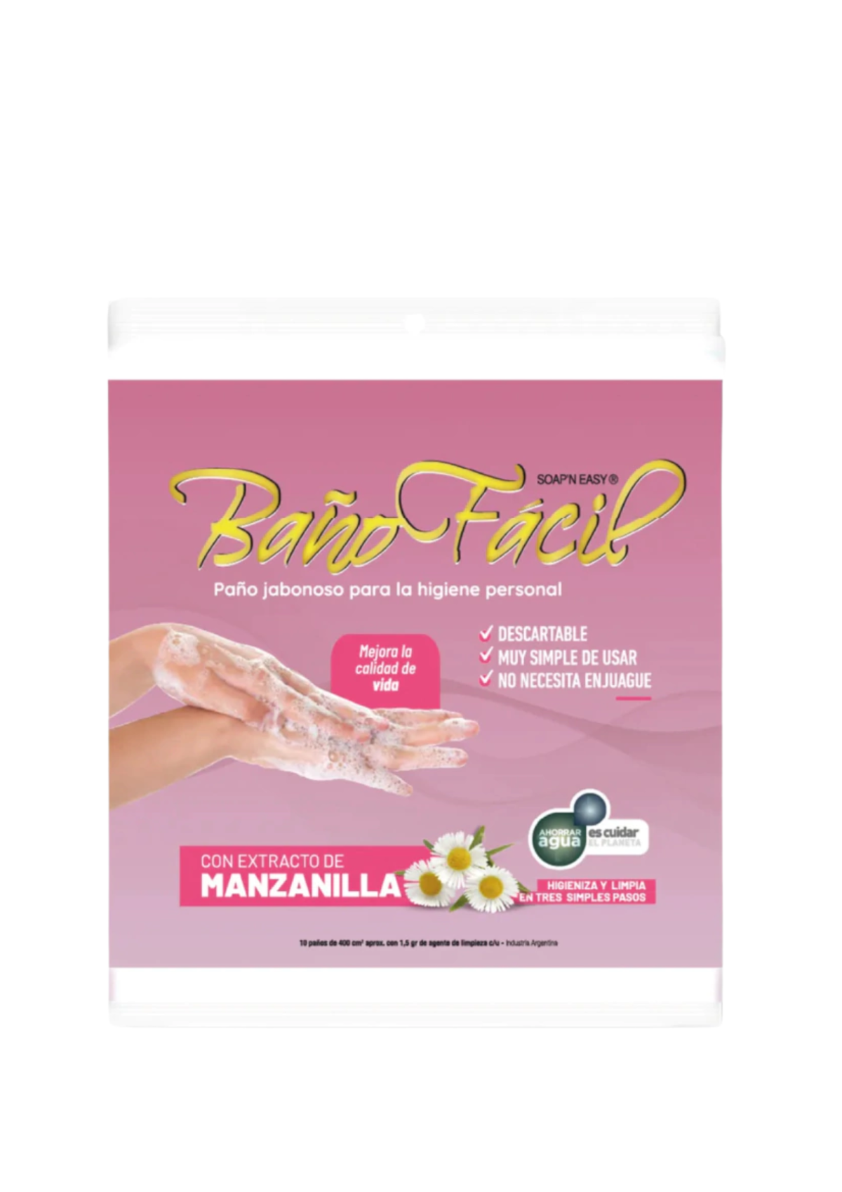 Es la solución ideal para higienizar personas con movilidad reducida, ancianos, enfermos con reposo, inmovilizados o enyesados. Limpieza completa, rápida, simple y efectiva. No irrita la piel. Fácil de usar para la higiene propia o de terceros. Evita derrames de agua sobre colchones y ropa de cama.