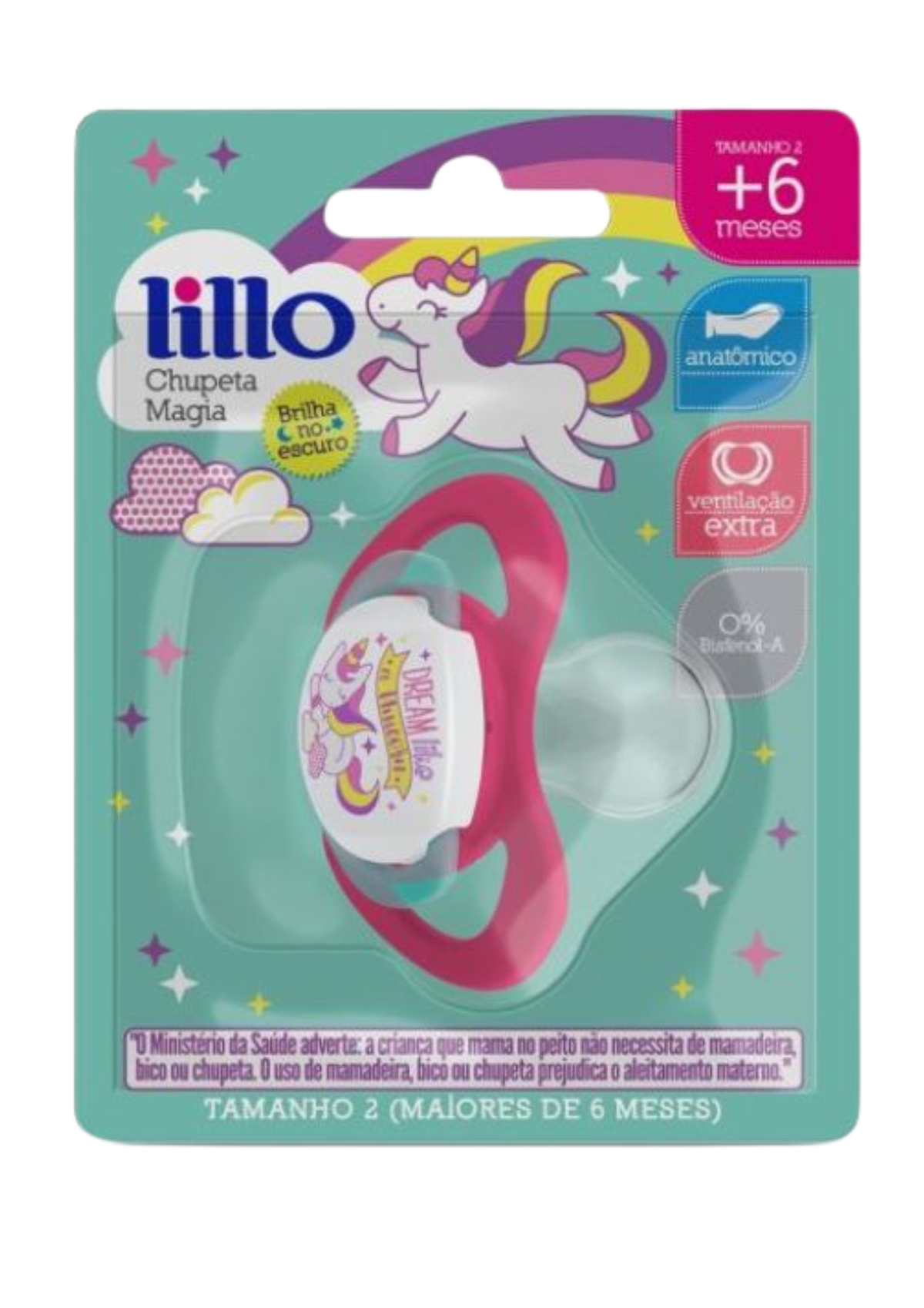 El Chupete Magia Lillo tiene canales con ventilación extra y bordes redondeados que le permiten acomodarse mejor en la cara del bebé. Su tetina de silicona suave y flexible tiene forma anatómica. Los diseños modernos y coloridos ilustran el botón del chupete que brilla en la oscuridad y se encuentra fácilmente por la noche.