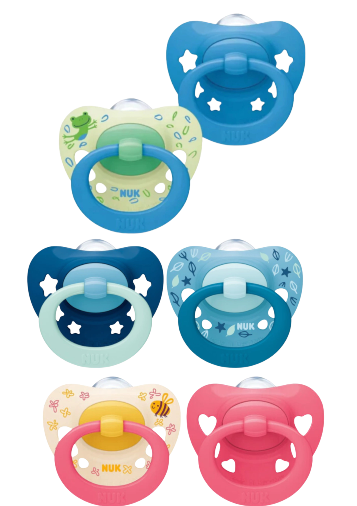 Sistema de ventilación NUK AIR SYSTEM: El aire escapa a través de la tetina, manteniéndola suave y flexible. Esto previene la deformación de la mandíbula del bebé y asegura el máximo bienestar.